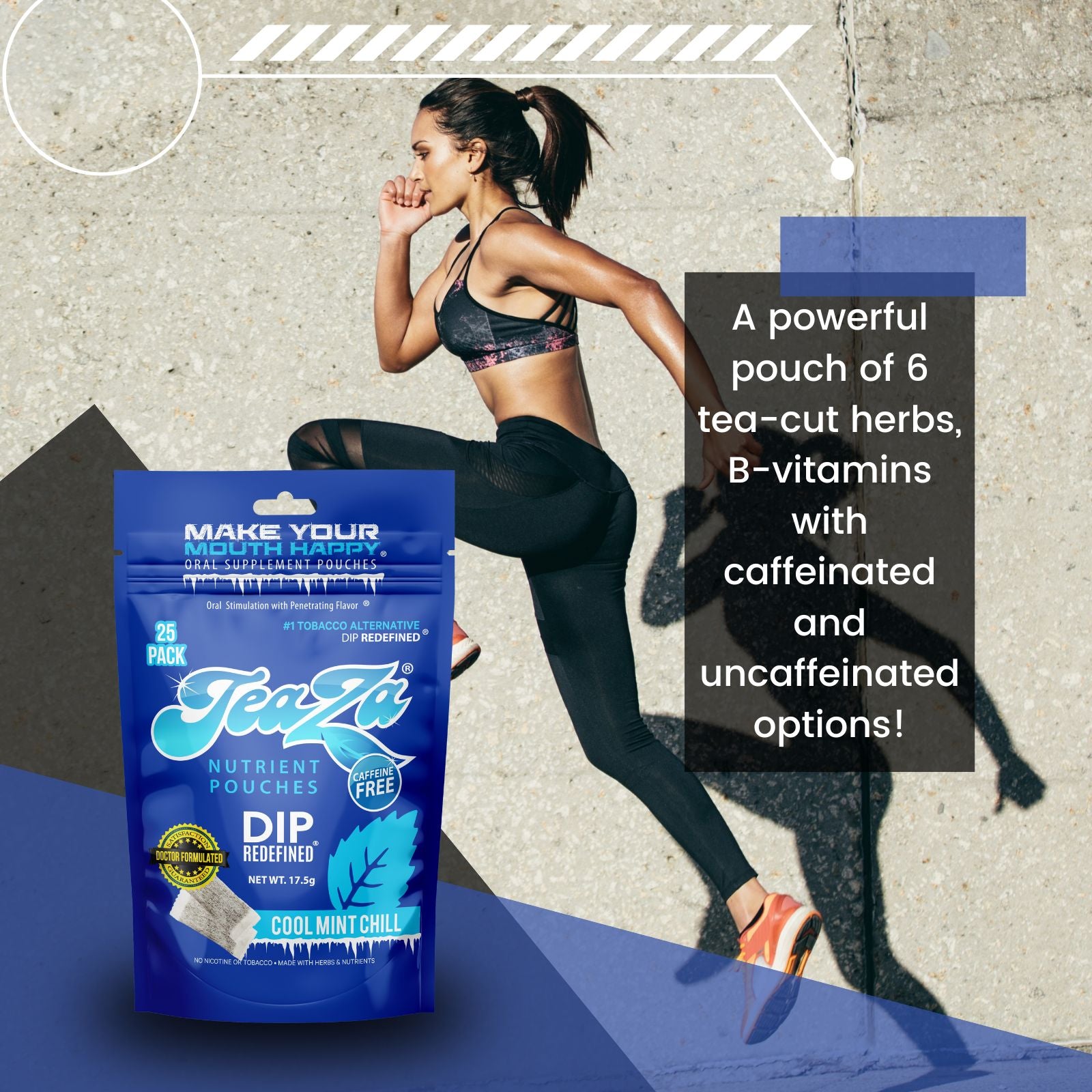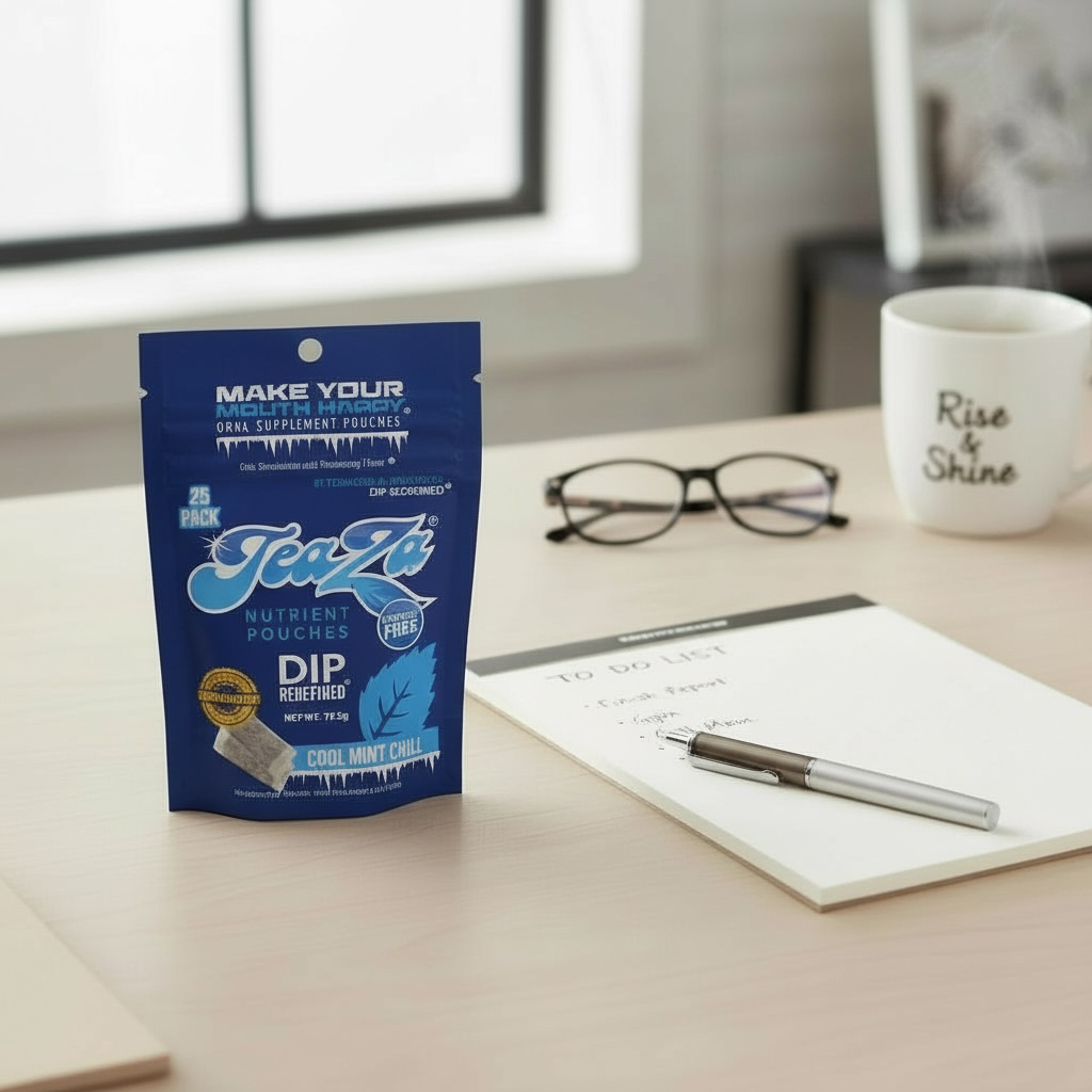 Experience the crisp, refreshing burst of Cool Mint Chill—TeaZa’s perfect nicotine-free pouch designed to keep you cool and calm all day long. Each 25-count bag is packed with natural minty goodness and a soothing herbal blend that helps curb cravings without caffeine or nicotine. Whether you’re relaxing at home or on-the-go, Cool Mint Chill delivers a smooth, invigorating flavor that refreshes your senses and supports your chill lifestyle.