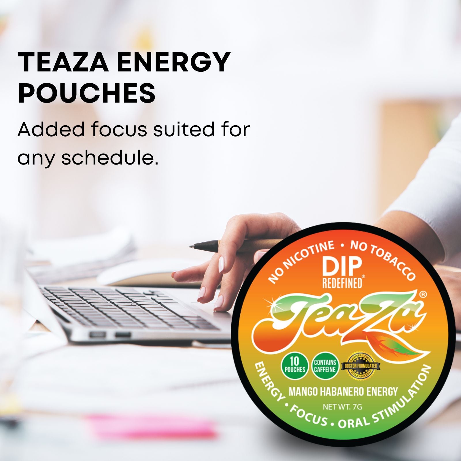 Turn up the heat with Mango Habanero Energy—TeaZa’s boldest pouch yet. This fiery fusion of juicy mango and spicy habanero delivers a flavor-packed punch, along with 100mg of natural caffeine from green tea and yerba mate. It’s the perfect nicotine-free, tobacco-free alternative to fuel your focus and fire up your day—without the crash.