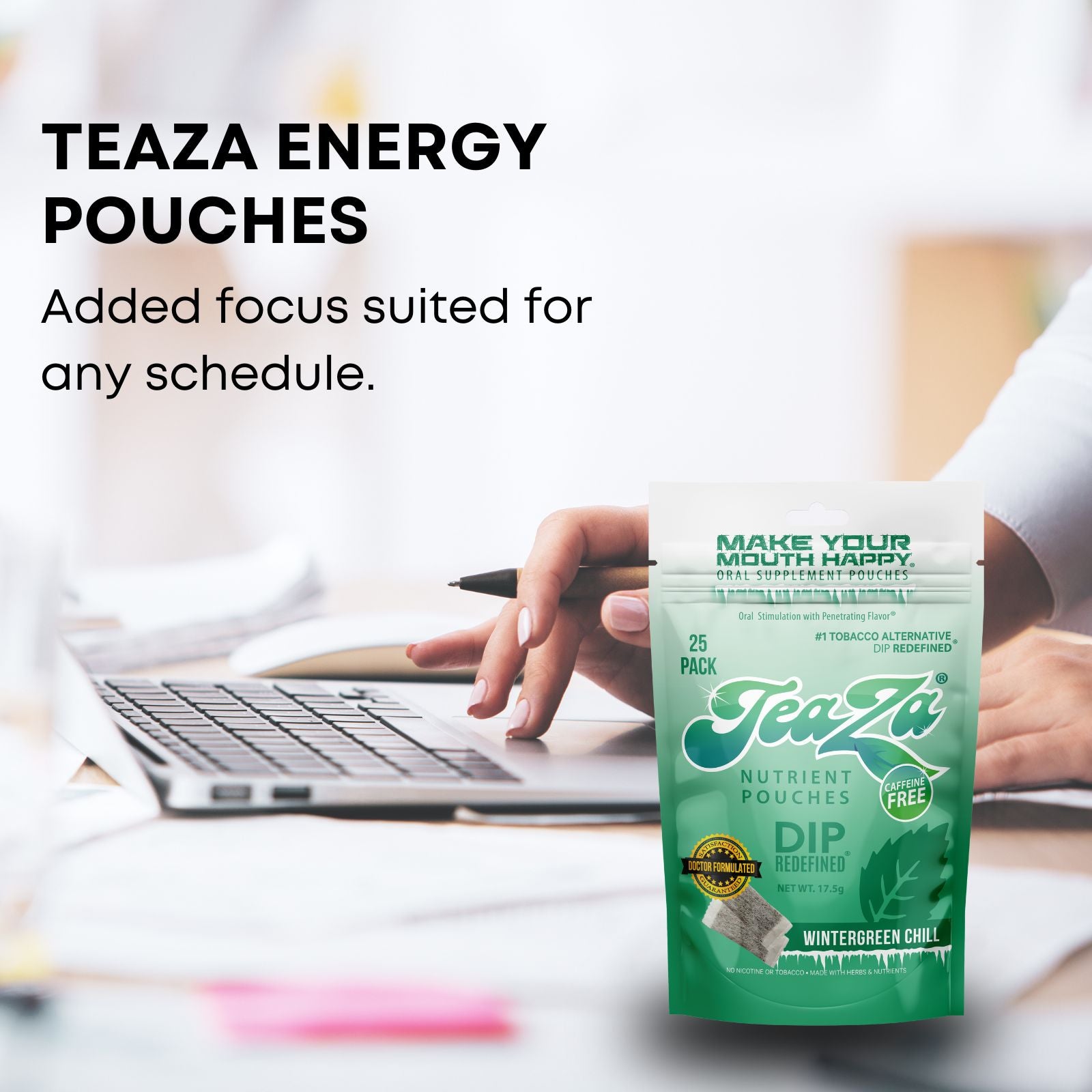 Experience the smooth, invigorating flavor of Wintergreen Chill—TeaZa’s nicotine-free pouch crafted to refresh and relax your senses. Each 25-count bag is filled with a cool wintergreen blend designed to curb cravings naturally without caffeine or nicotine. Perfect for those seeking a crisp, minty alternative to tobacco and dip, Wintergreen Chill offers a discreet, long-lasting way to stay cool and calm throughout your day.